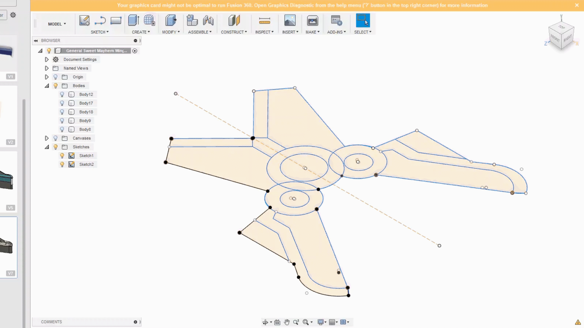 After developing our Sketch of General Mayhem's Wings, we can now transform our Sketch into a CAD Model using Autodesk Fusion 360.