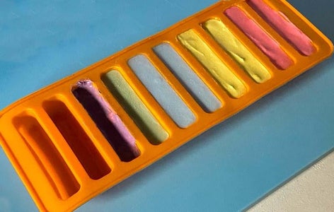 Spoon or pour each colour mixture into your chalk mould. Make sure to pack the mixture tightly into the mold to prevent air bubbles.