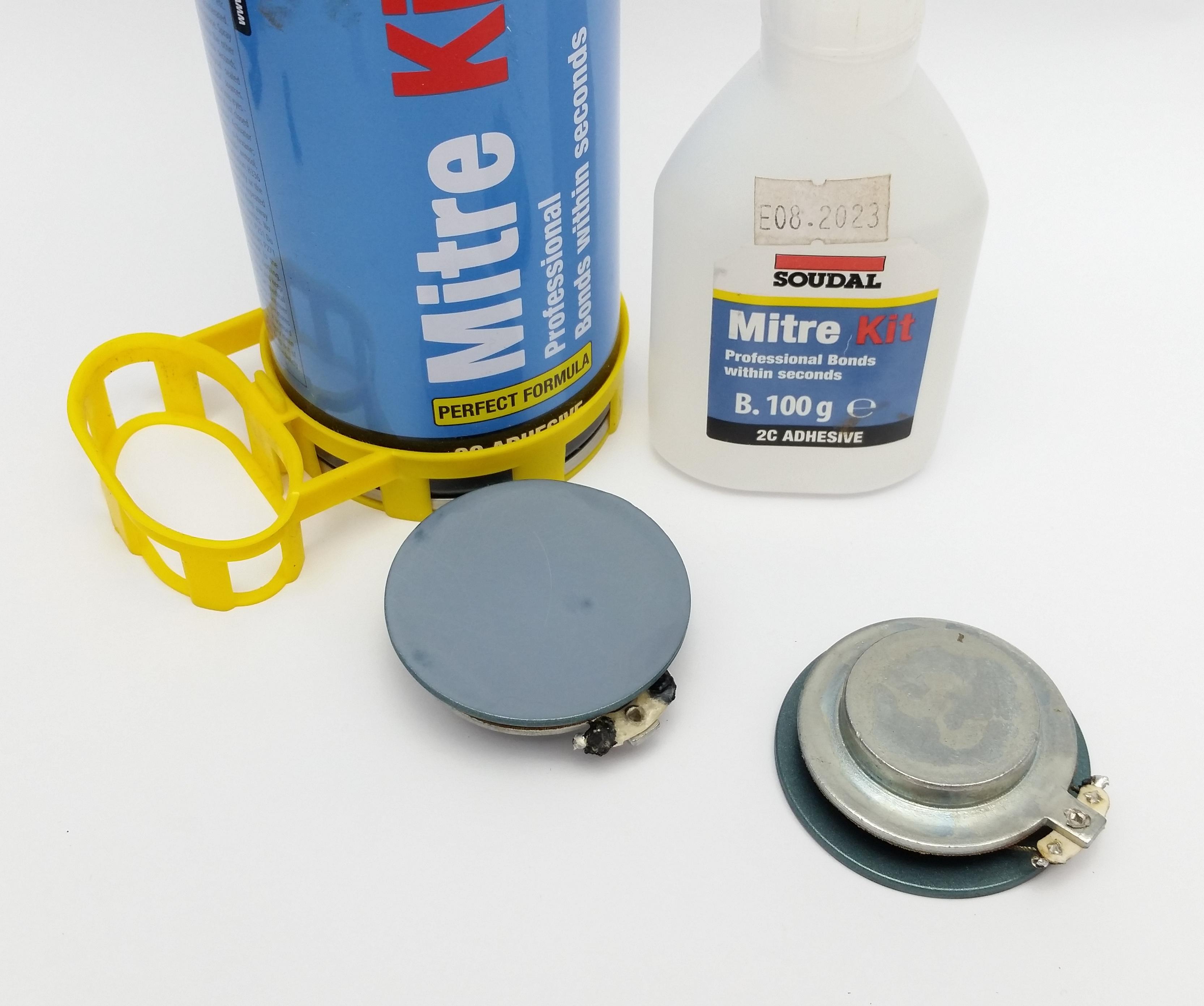 I used the same 2 part CA glue to stick the new ring onto the voice coil.