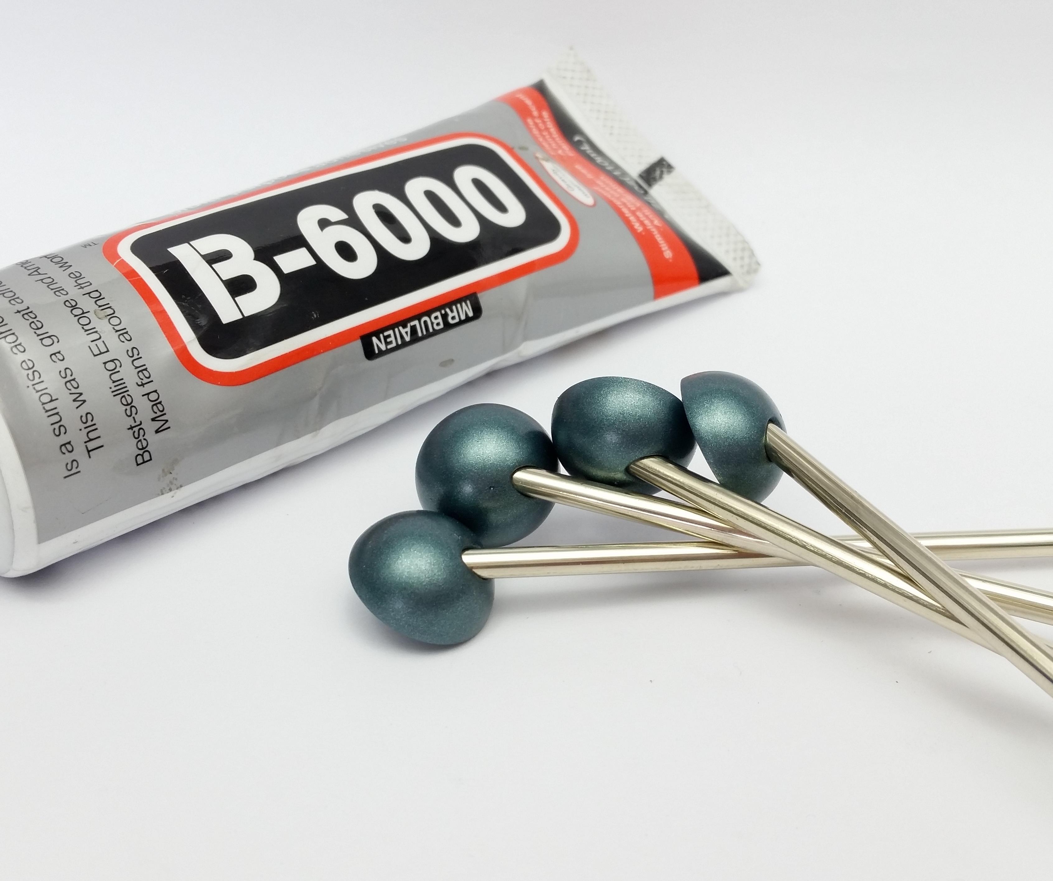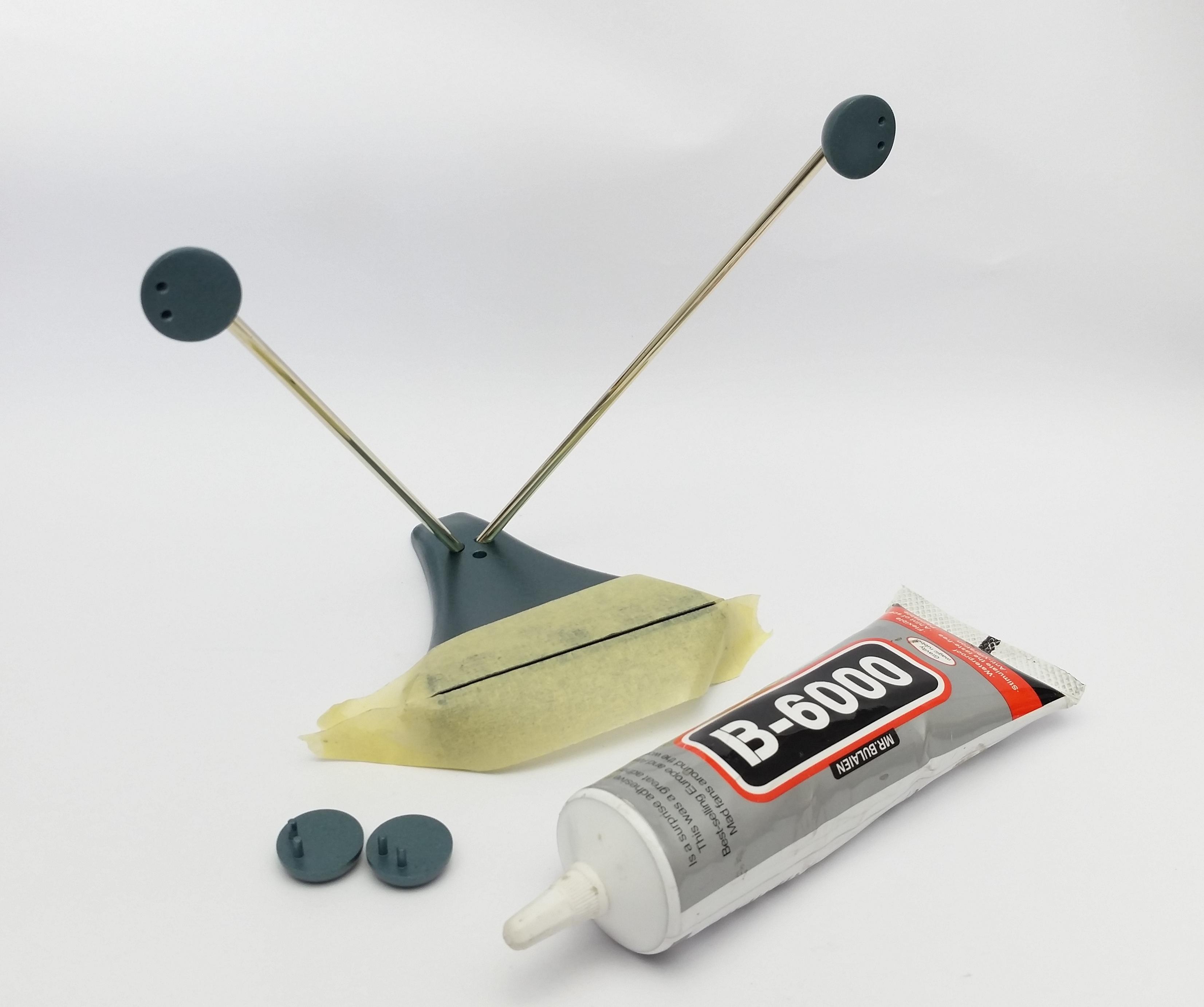 Next using B-6000 glue for its vibration dampening quality and strong hold I added a drop into each of the 4mm holes in the "Glass Back Support" spheres, next I pushed in a brass rod into each sphere.
