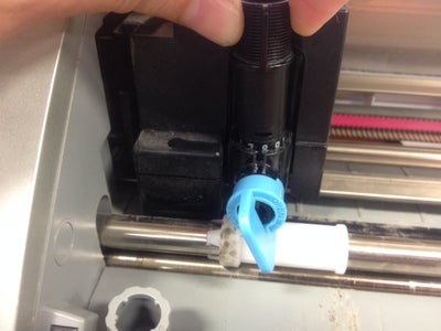 Replace the blade, placing the ridged side nearest to you and the blue locking mechanism, the ridge of the black handle should slip into a small vertical slot, and you can turn the blue lock clockwise until it is secure. I've found it's hard to break this lock, so experiment until you've found the right spot. Again, the blade is sitting in a spring loaded mechanism, so it moves freely up and and down the vertical axis, you are locking it in the horizontal axis to keep it from spinning or slipping.