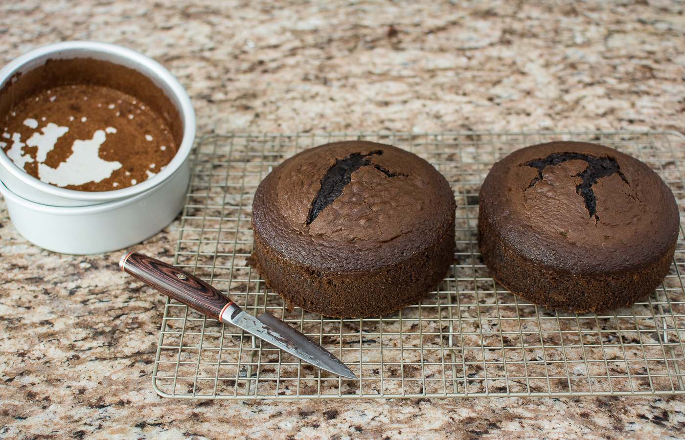 1. Preheat oven to 325°F. Grease and flour (bottom only) two 6-inch round baking pans. If you leave the sides of the pans untouched your cakes will bake up taller!