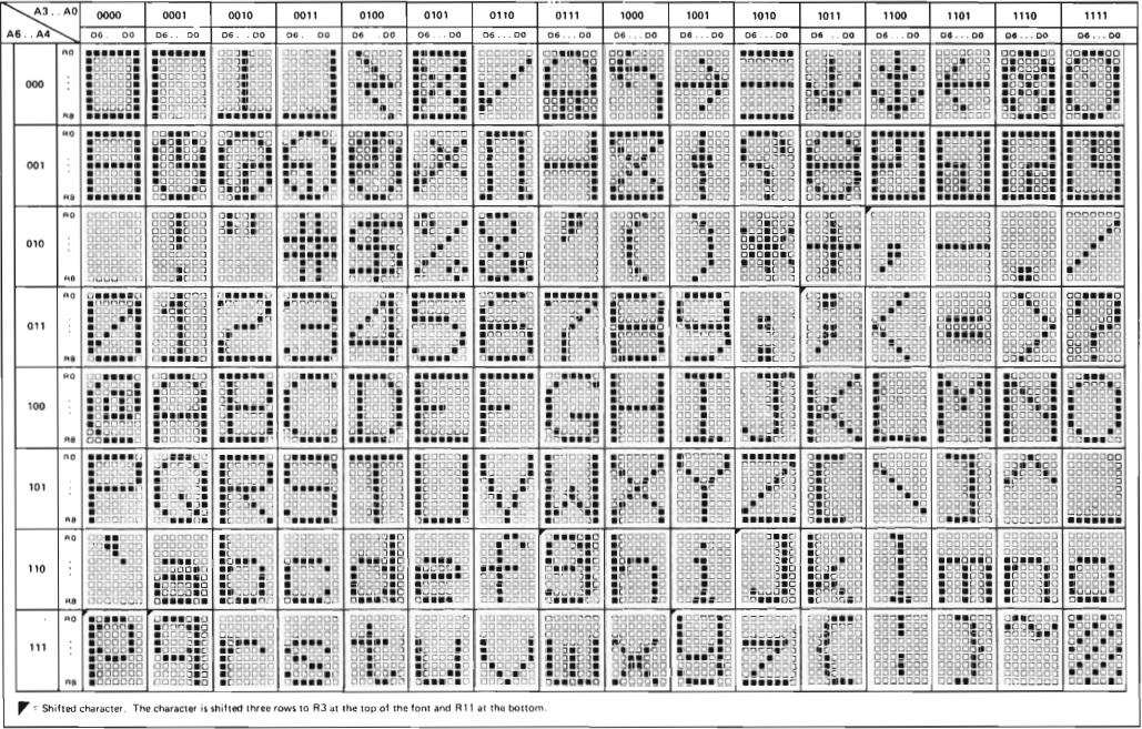 Although most systems shipped with only 8K or 16K of memory (or less) in those days, I have to wonder why they didn't map these addresses up into the F000-FFFF space to allow a contiguous 60K memory space for user programs. At any rate the important thing to note for display purposes is the CC00-CFFF shared video RAM. This 1K space was used to store 16 lines of text each of which is 64 characters long. Any text written to this memory would automatically be displayed on the screen.
