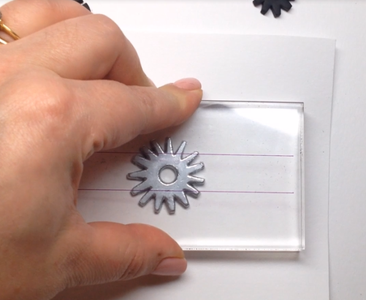 Use the heat gun to melt the embossing powder and use something to flat it before it cools down. I used an acrylic block, but you can use a metalic piece too