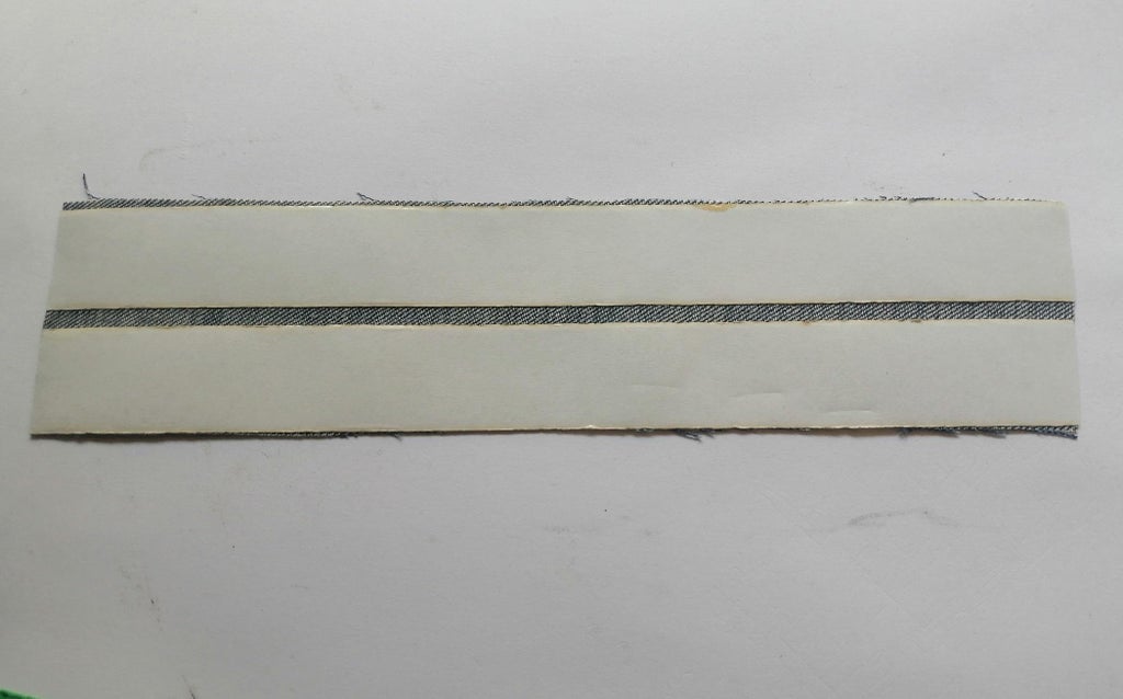 2. Using the ruler and pen, mark a rectangle of 22cm x 5cm (adults should use 24cm x 5cm) on the jeans cloth.