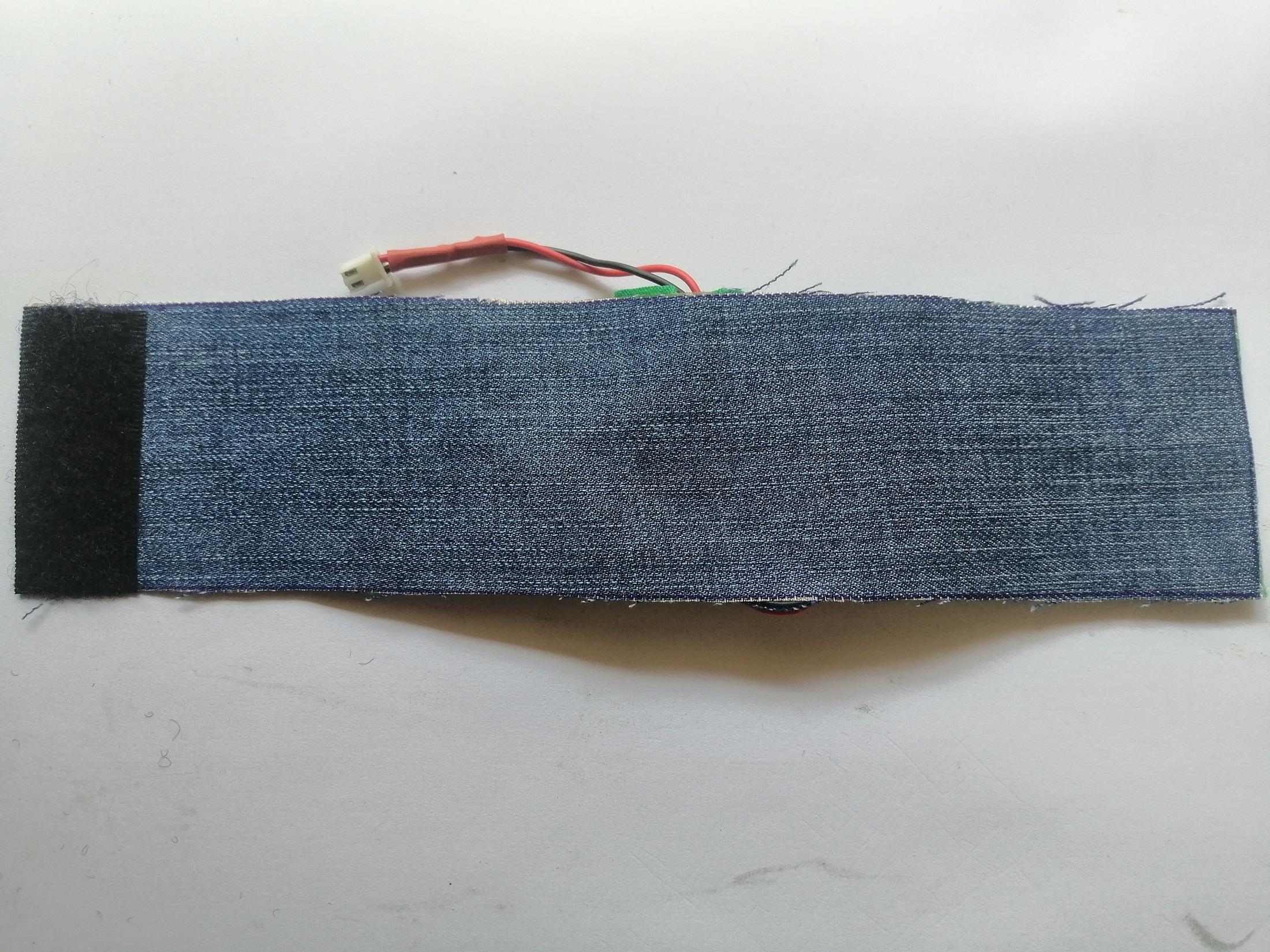 6. Stick the Velcro hooks on the right side of the battery holder on the T-shirt cloth.