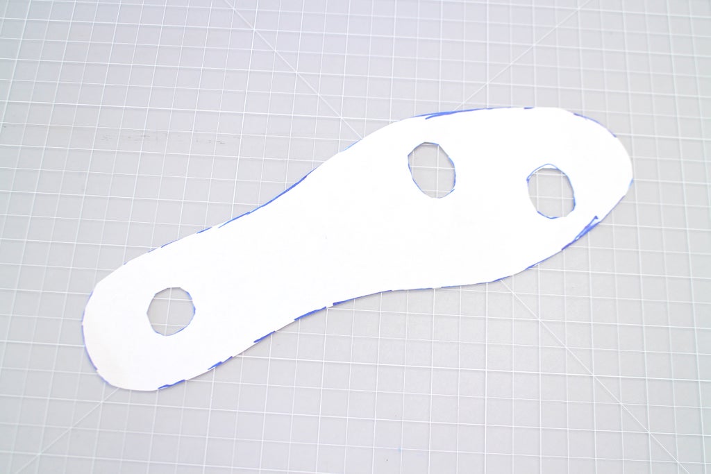 Draw where each foot switch is going to be and what area you want the switch to cover. Cut out each marking and the sole shape.