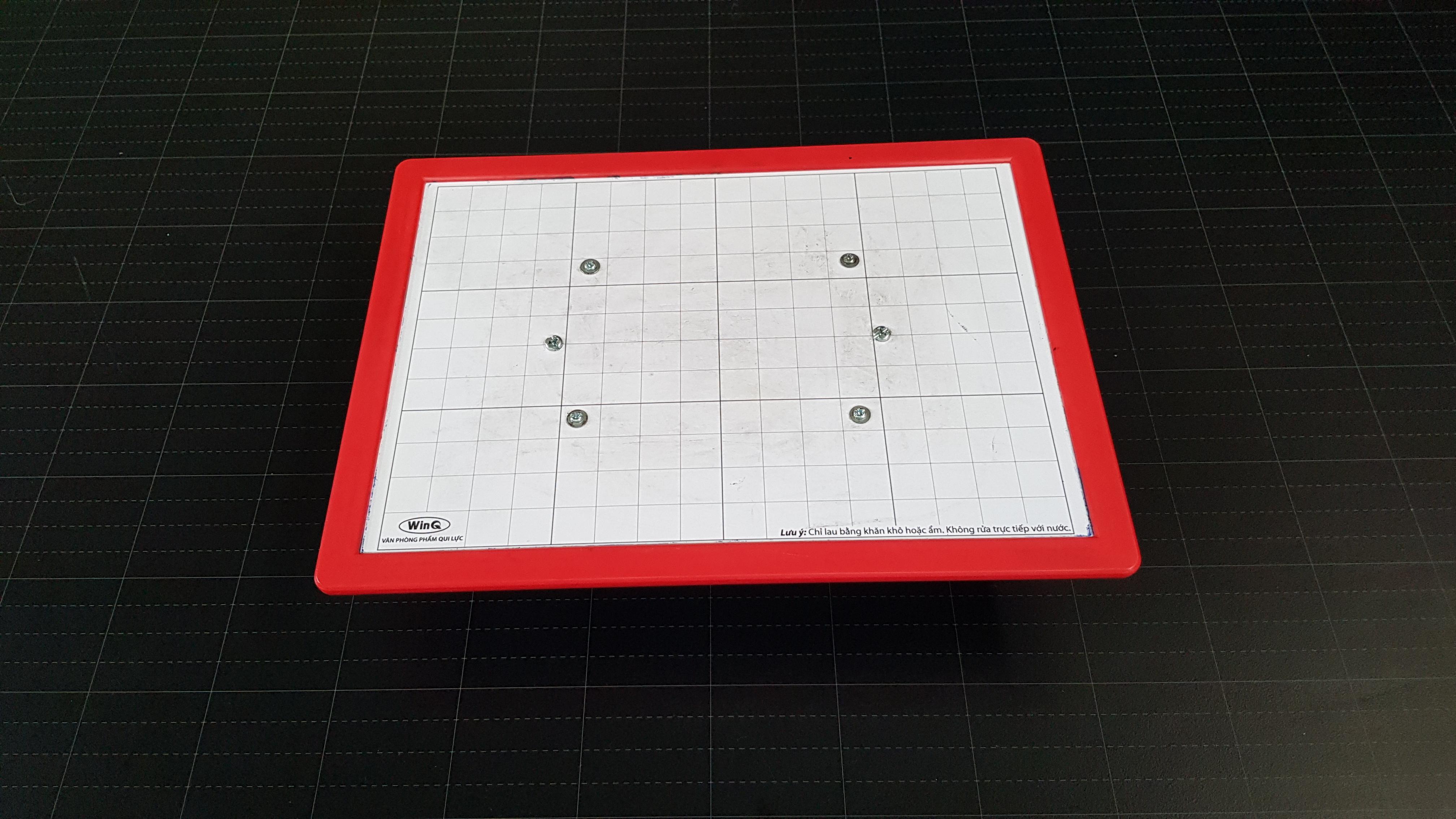 - I reused a black and white board, A4 size for kids as a working platform which had a plastic border at outer edges. Before connecting X axis base to working platform by bolts, I inserted 2pcs x acrylic sheets thickness 5mm to make a gap between working platform and other supports.