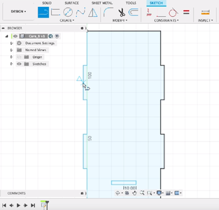 - We will create another guide line in the middle point upward direction, on the second horizontal line at the top (the 24mm measurement line), select "MIRROR" again, choose the column on the right side for "OBJECT: SELECT" and choose our last created guide line for "MIRROR LINE", click "OK", delete all the guide lines we have already used and press "FINISH SKETCH".