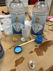 Resin Cutting Board By Averywallace13 in WorkshopMolds & Casting1503Introduction: Resin Cutting Boardi made this to cut foodStep 1: mixStep 2: pour into one sideStep 3: pour blue into this sideStep 4: add rocks and shells and let hardenStep 5: take out of mold