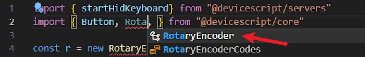 Prior to importing the RotaryButton, it is necessary to bring it into consideration. As for the decision to use a RotaryEncoder, you can refer to the documentation provided here for further information. RotaryEncoderServer | Jacdac TypeScript - v1.33.4 (microsoft.github.io)