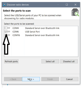 Step 2: Select the COM port to which the XBee module is connected and click on “Next”.