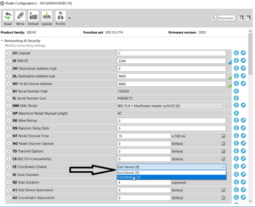Note: As mentioned in the steps, this must be carried out for both the XBee modules. The only difference between both will be that the Source and Destination Addresses are opposite for the End Device and Coordinator and one must be selected as the End Device and the other as “Coordinator”. In the “Coordinator Enable” drop-down list, make sure both the XBee modules are given the same PAN ID.