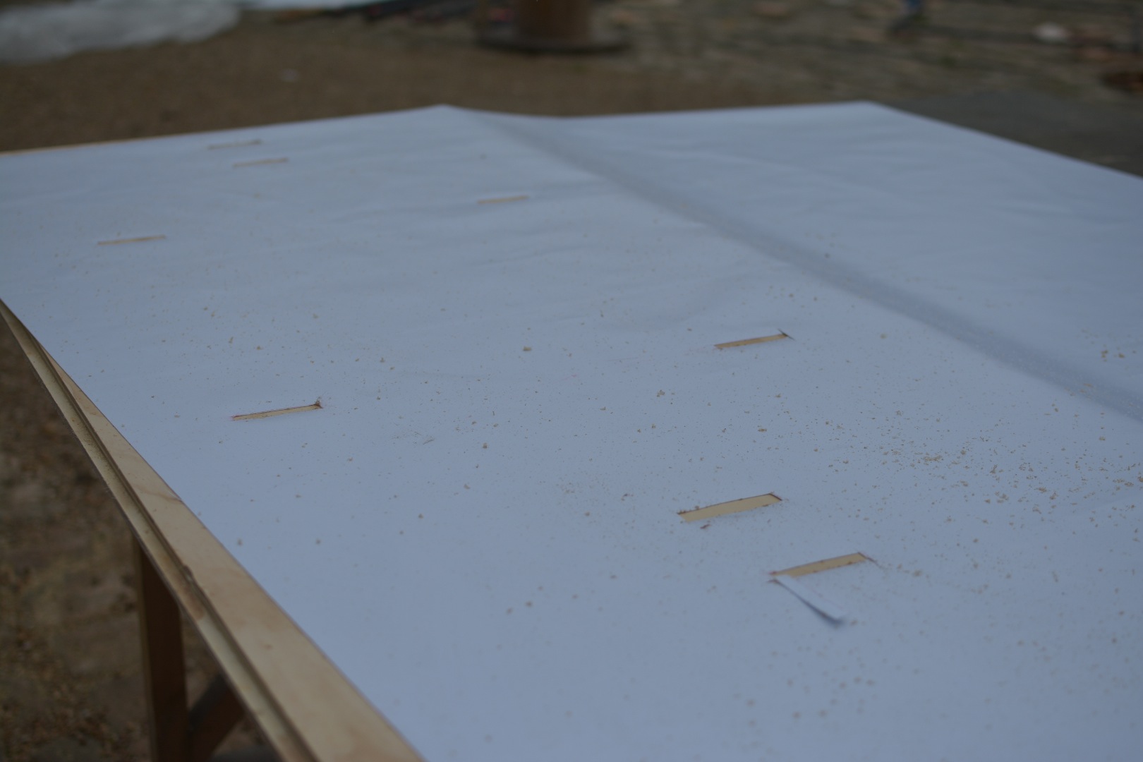 The placement of the filters was drawn onto a waterproof material and holes cut where the mount plates go through.