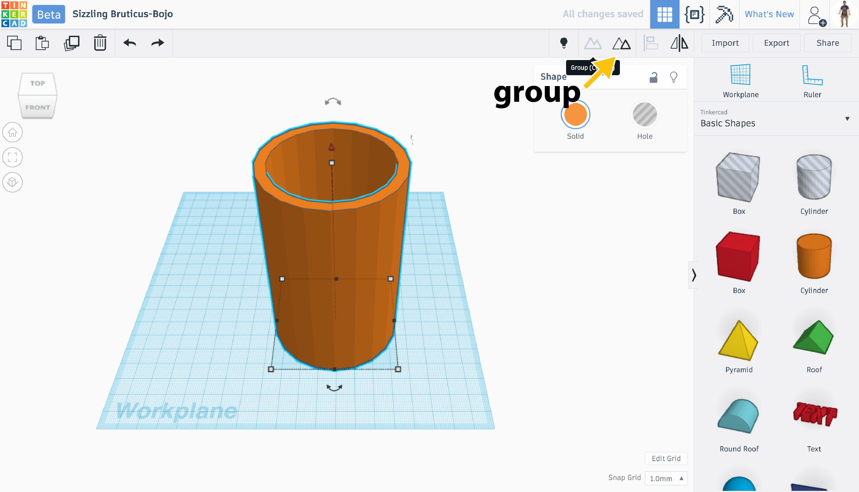 Click the Group button to turn your amp into a single object that's ready for 3D printing.