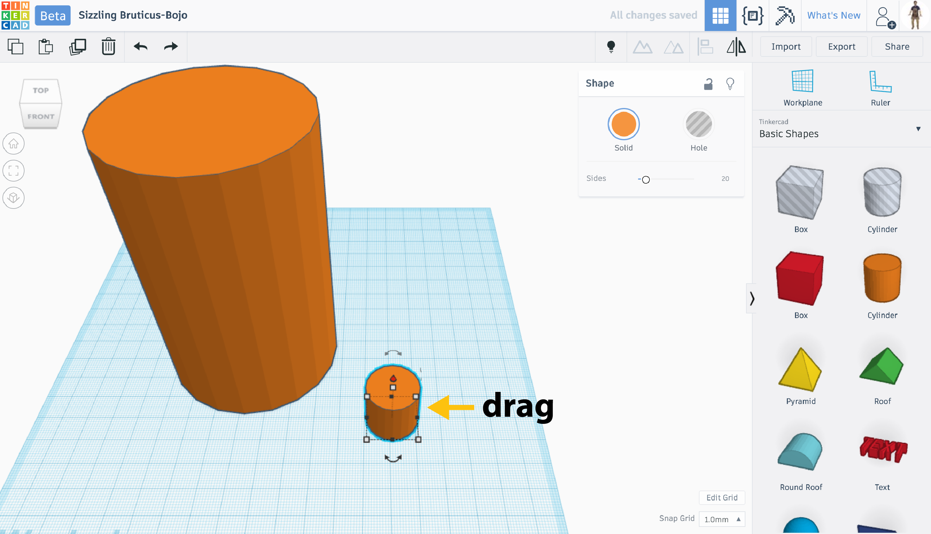 Drag the handle on the workplane to make it 70mm X 70mm. TIP: You can constrain the scale by holding Shift while you drag the handle.