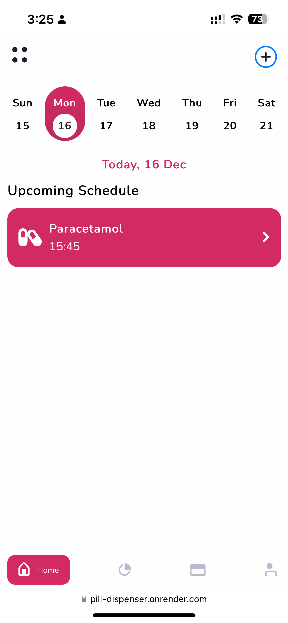 The web application acts as an interface for users to configure and manage the pill dispenser system remotely. It provides a seamless and user-friendly platform to set up pill schedules, monitor dispenser activity, and receive notifications. Below are the key features and details of the web application: