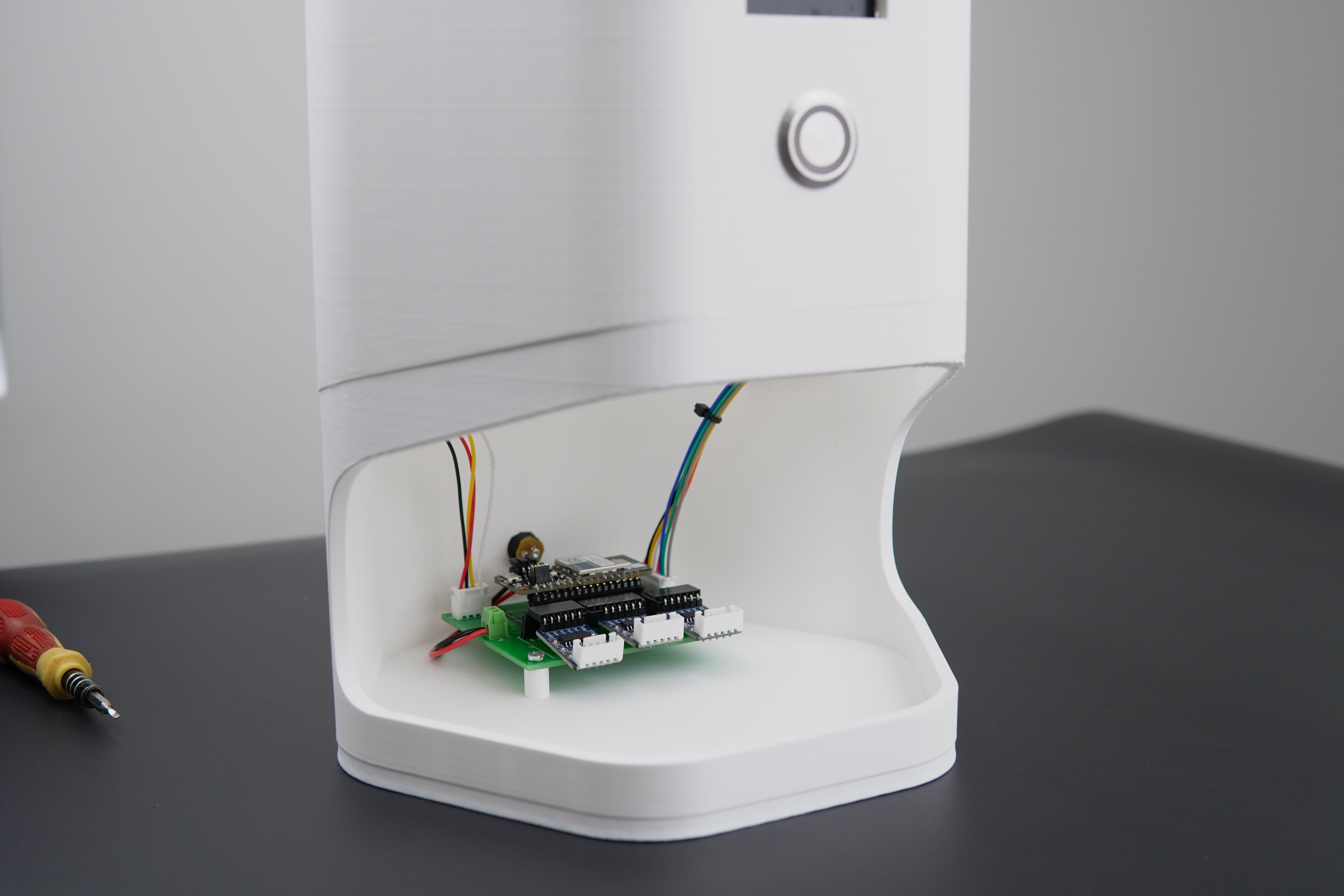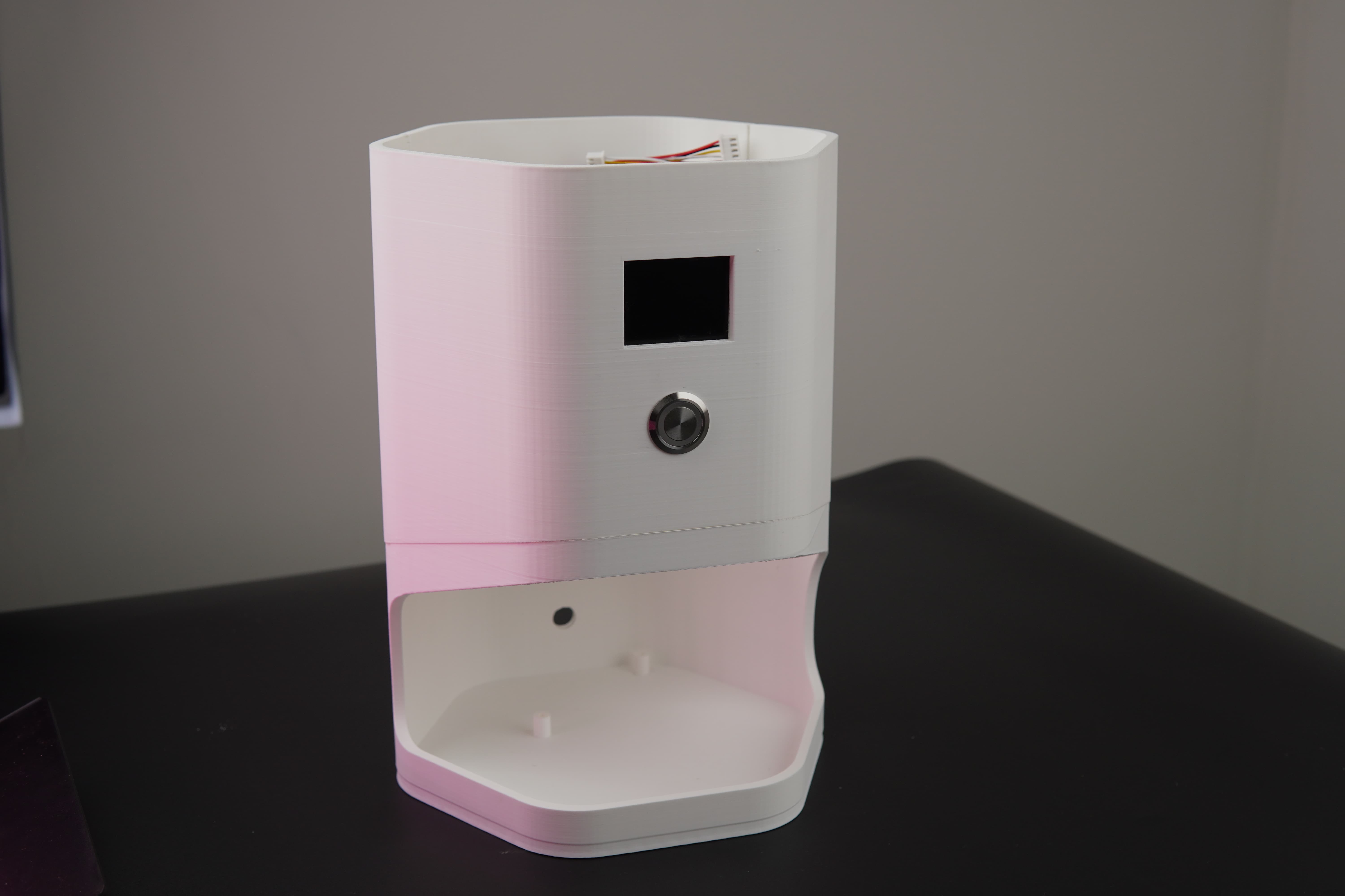 The structure was divided into two main sections: the upper part, housing the dispensing mechanism, and the bottom part, which holds the PCB with all connected components.