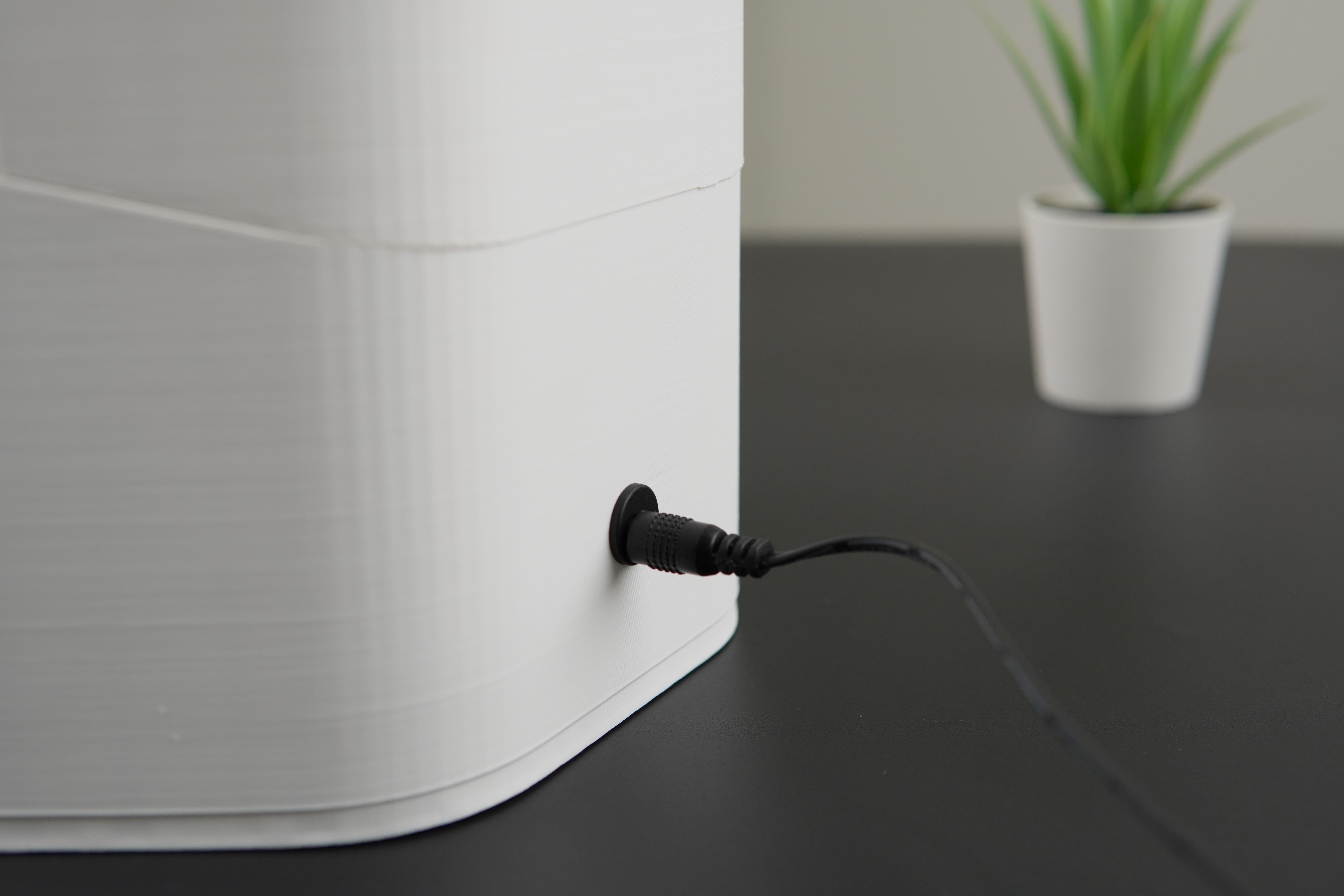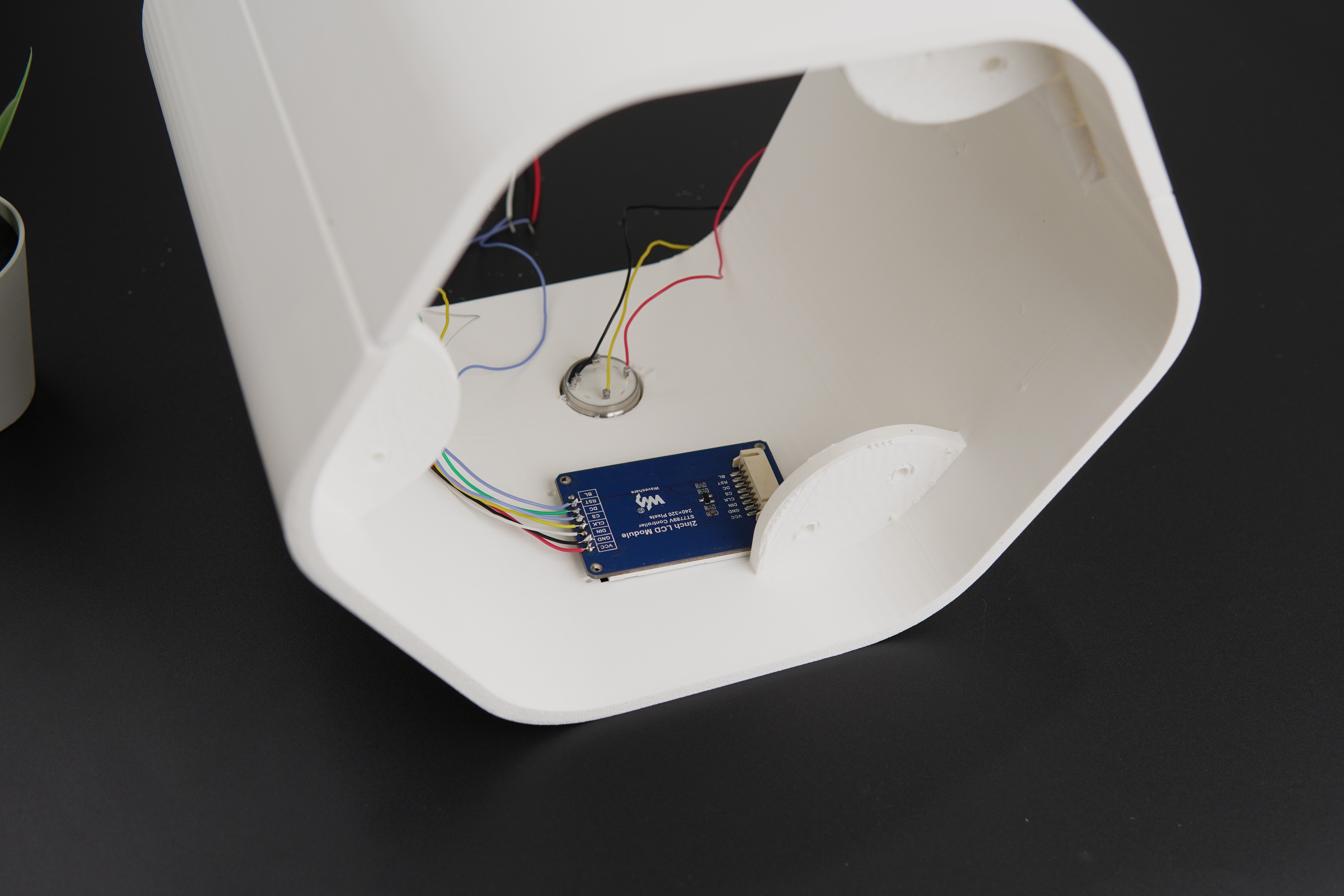 Next, the PCB was secured to the bottom portion, and the upper and lower sections were stacked together, completing the 70 percent assembly of the device. For powering the device, a DC female jack was used.
