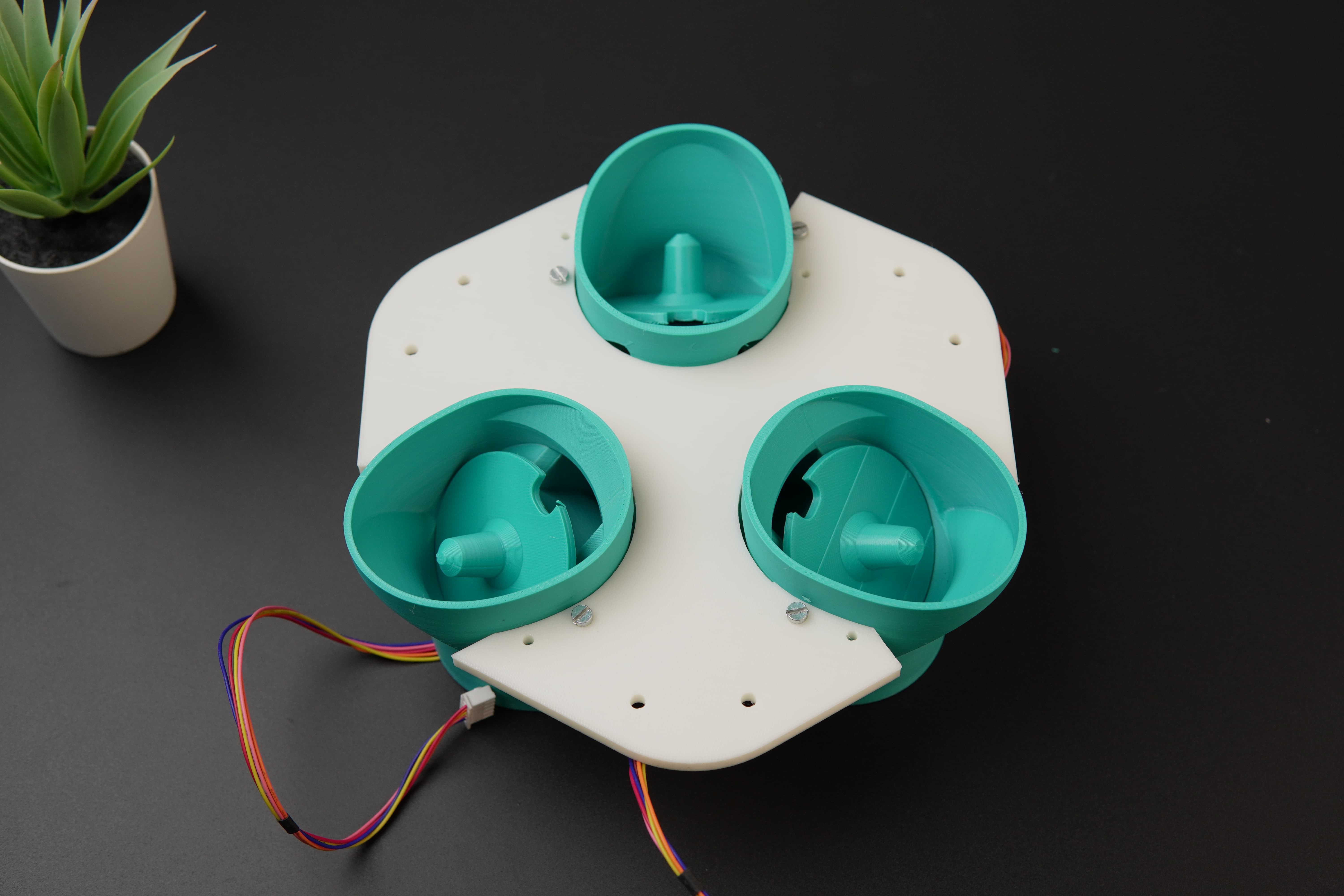 We then attached the pill guide, which directs the dispensed pills along a predefined path to the cup positioned below.