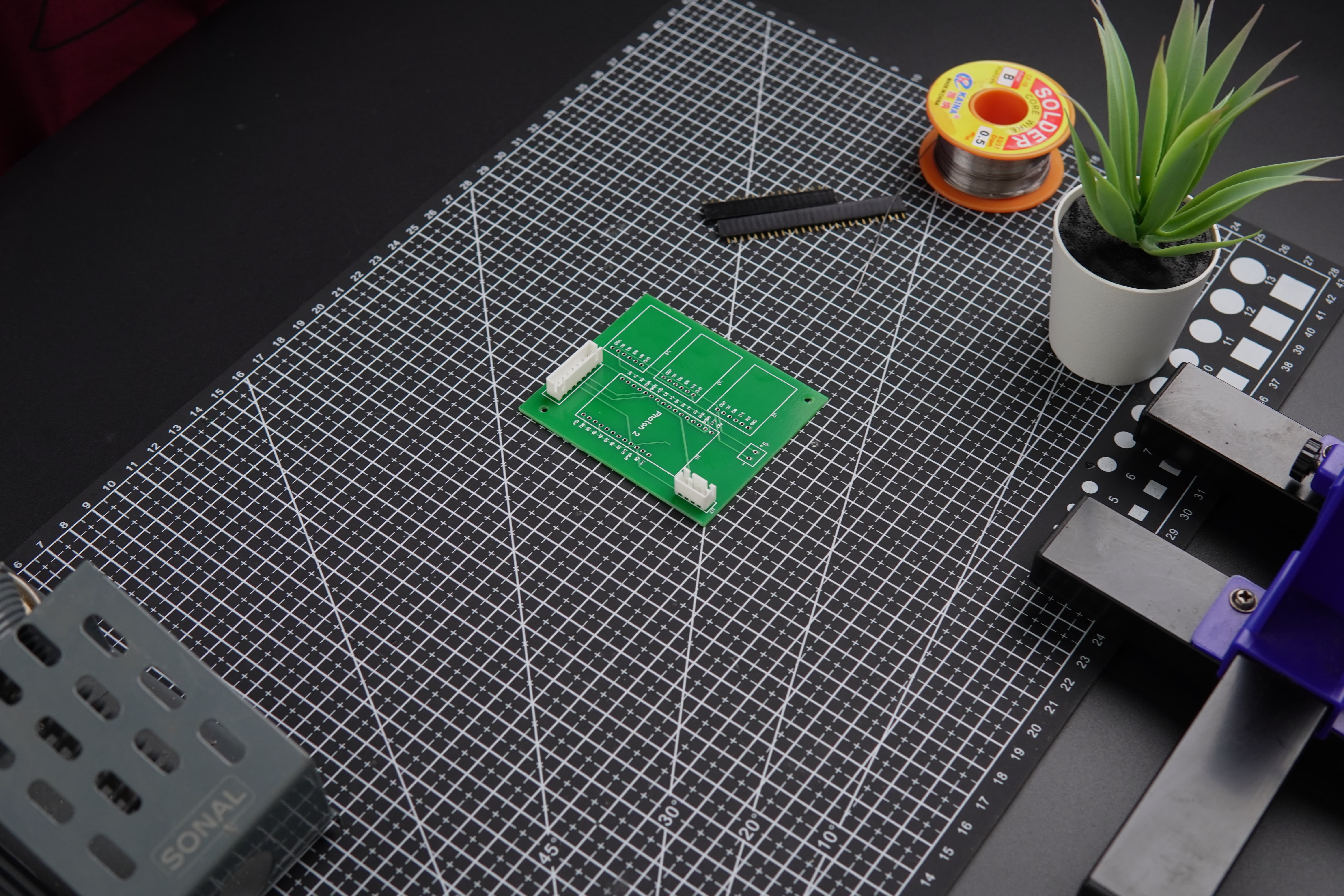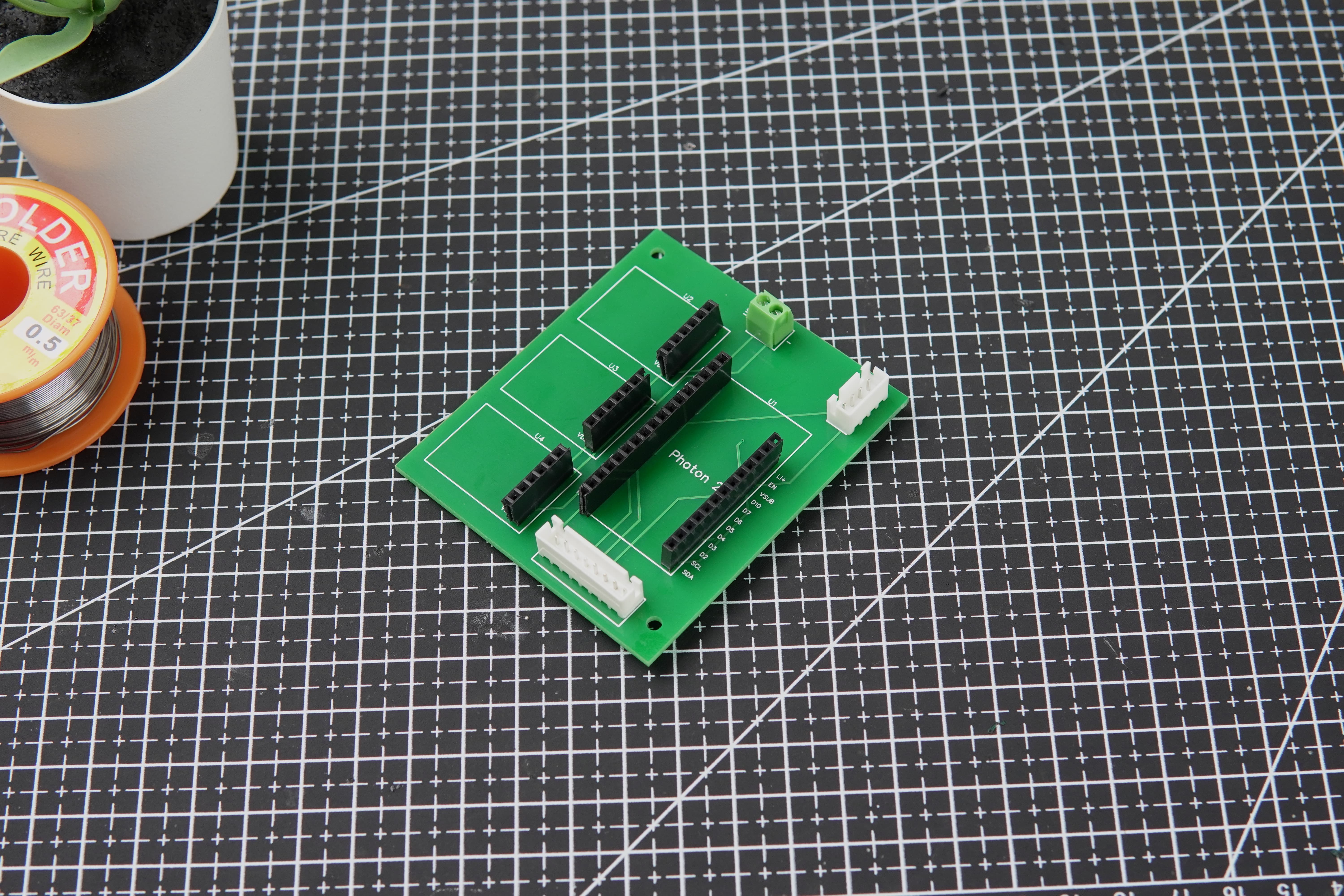 With the mechanical setup complete, we prepared the PCB by soldering the necessary headers, JST connectors, and a screw terminal block, ensuring all components were ready for final integration.