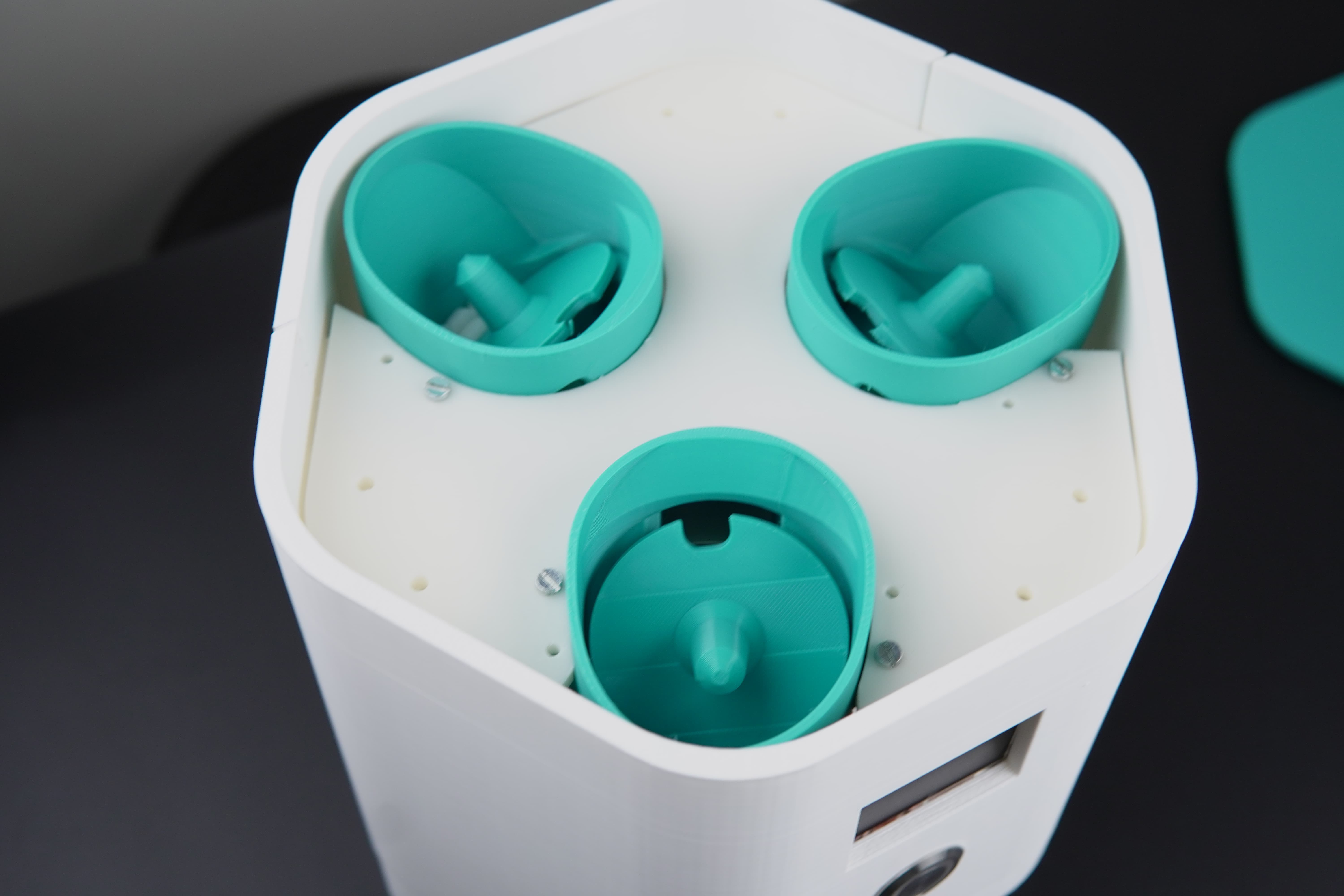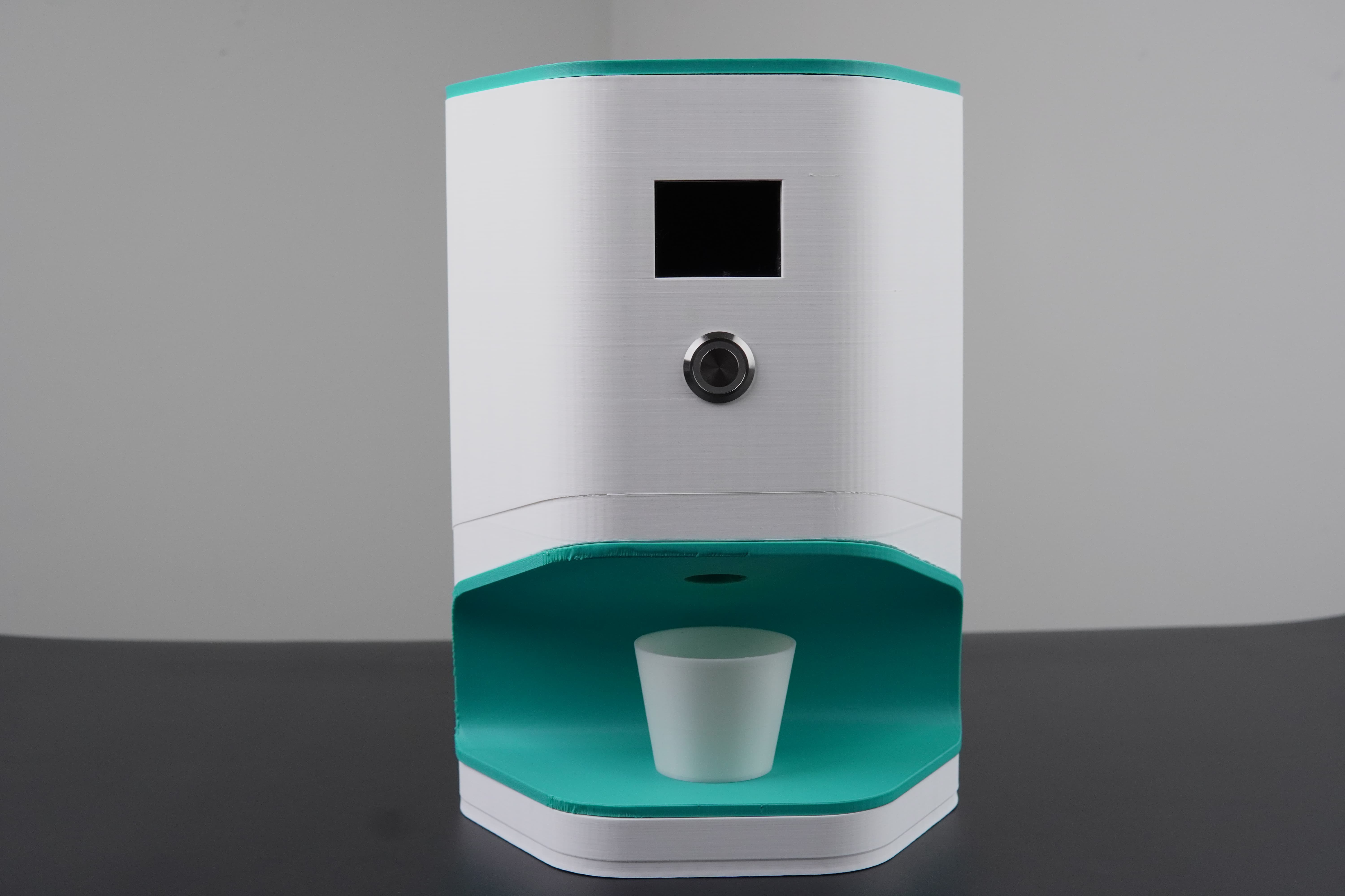 We chose a green‑and‑white color theme to give the dispenser a clean, modern look, then 3D‑printed the enclosure in durable PLA+ filament.