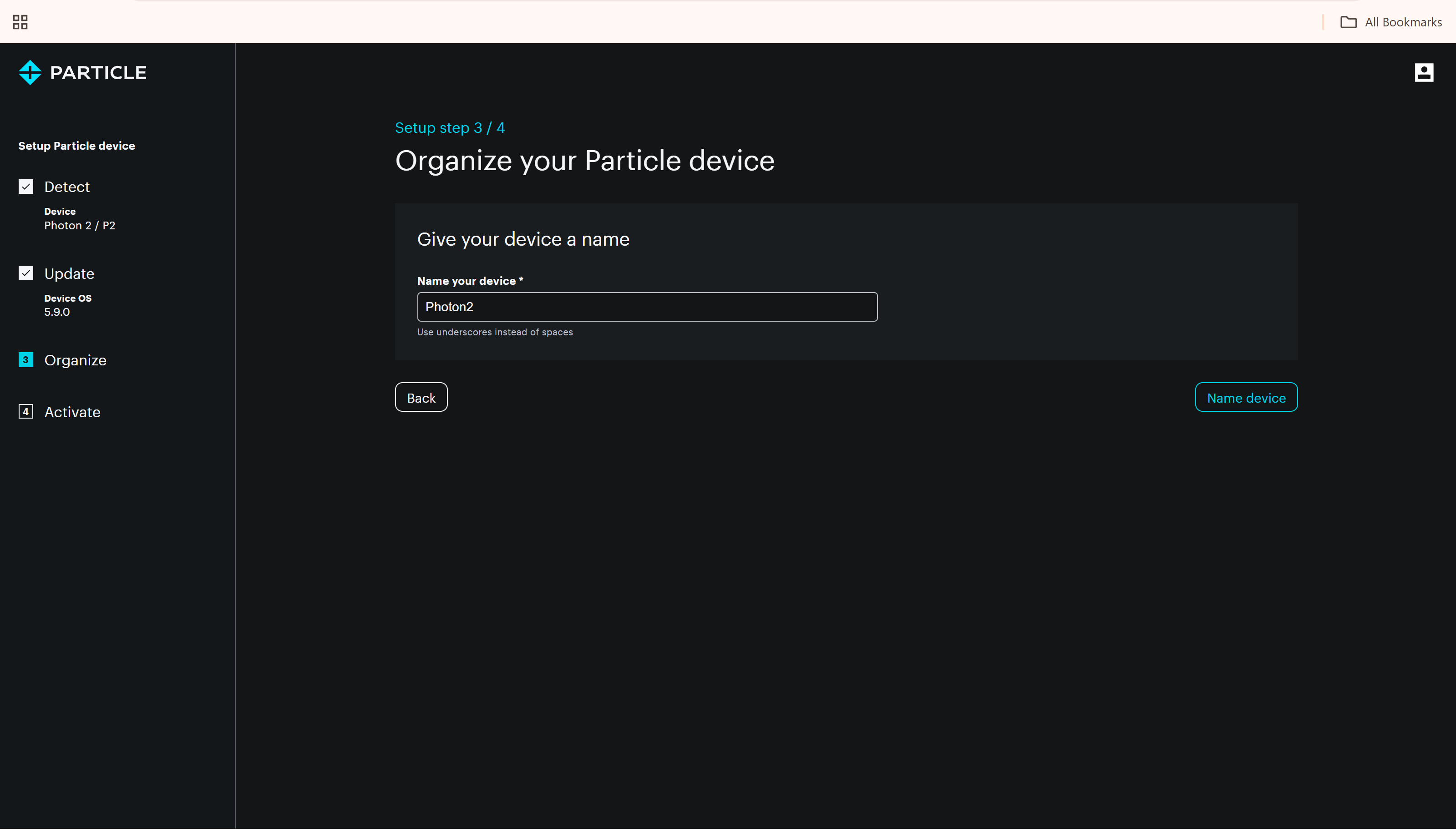 - Give your Photon a unique name for easy identification in your account.