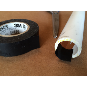 Cut a small piece of electrician’s tape with the scissors. Apply the electrician’s tape over the conductive copper tape at the lip of the PCV tube. You want to insulate the copper tape where it leaves the pad of copper tape inside the PCV tube and crosses over the lip of the tube. Make sure you leave the copper tape pad uncovered by electrician’s tape.