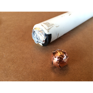 Tear pieces of copper tape approximately one inch long. Tear enough tape to make a pad on which the the marble fits.