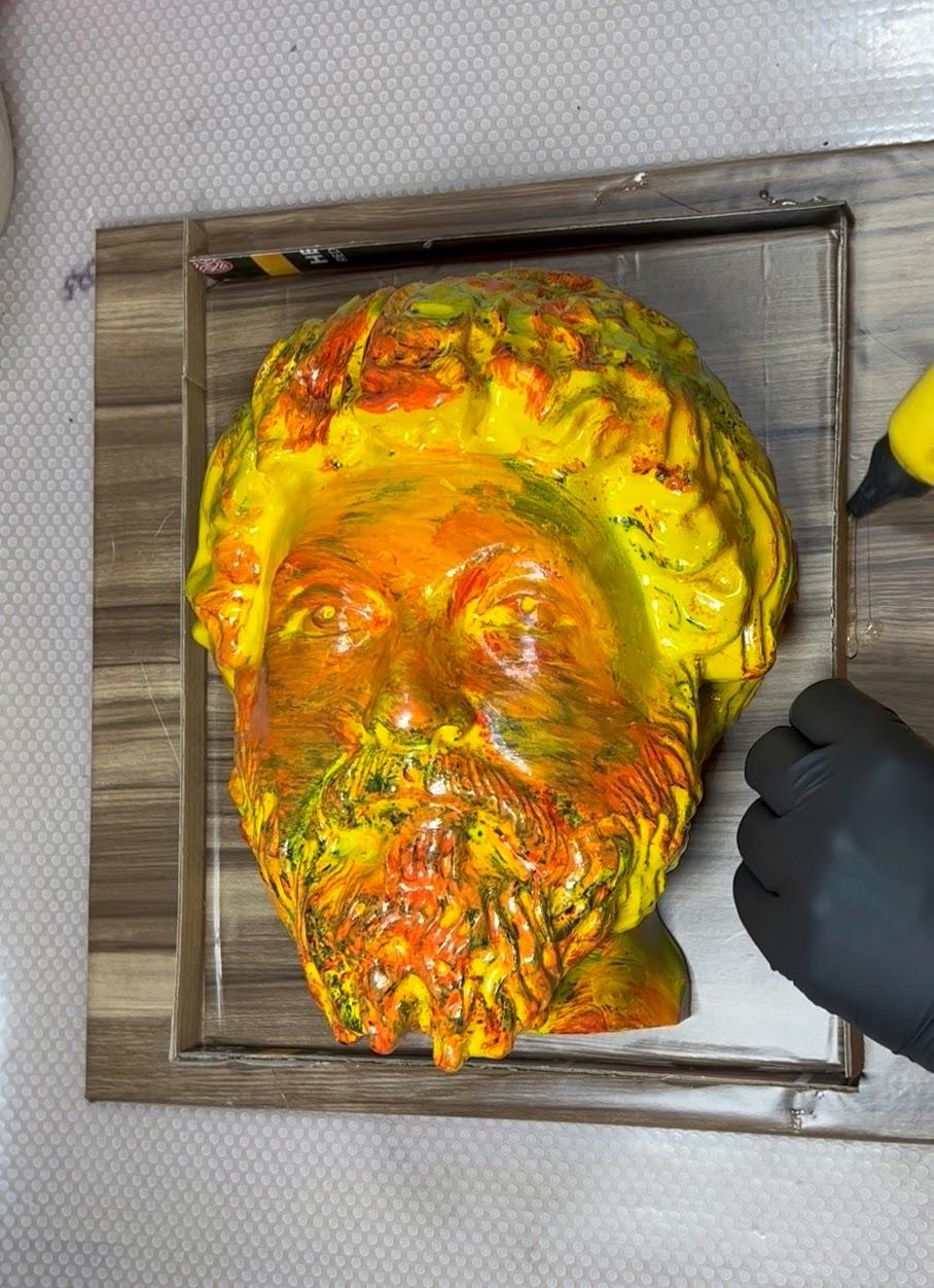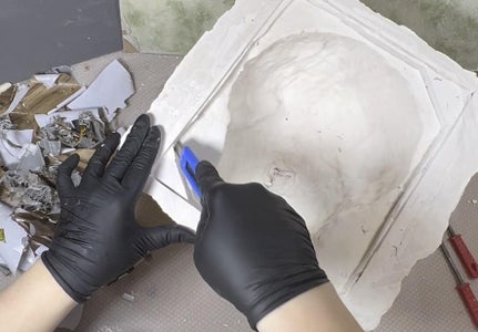 If you want to hang your replica on the wall, you have to embed a piece of wood at the back of the head before you pour your last batch of liquid foam.