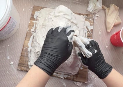 You can also use jesmonite or speed up the process by using plaster bandages. You can also use strips of muslin fabric, soak them in plaster and use them to build the thickness of the shell.
