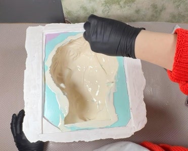 Allow it to set and afterwards remove cardboard strip border from around the face.
