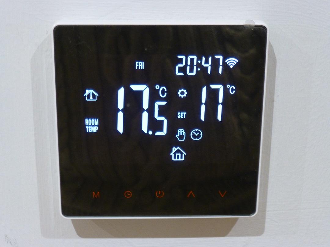 Automation is there to help! The original thermostats used three wires – live, neutral and switched. So there appeared to be a potential to install smart thermostats - where different temperatures could be set for different times of the day. I was not sure if these would work on a timed system. Fortunately I selected Wifi versions – so although these did not have internal clocks they did read the time off the internet when switched on. I installed two of these – for the Kitchen and Lounge. They needed back-boxes (original were surface mount) but these were not too difficult to fit with all the YouTube videos to advise. The original thermostats could be fitted to a back-box so reversing the installation was possible if all went pear shaped.