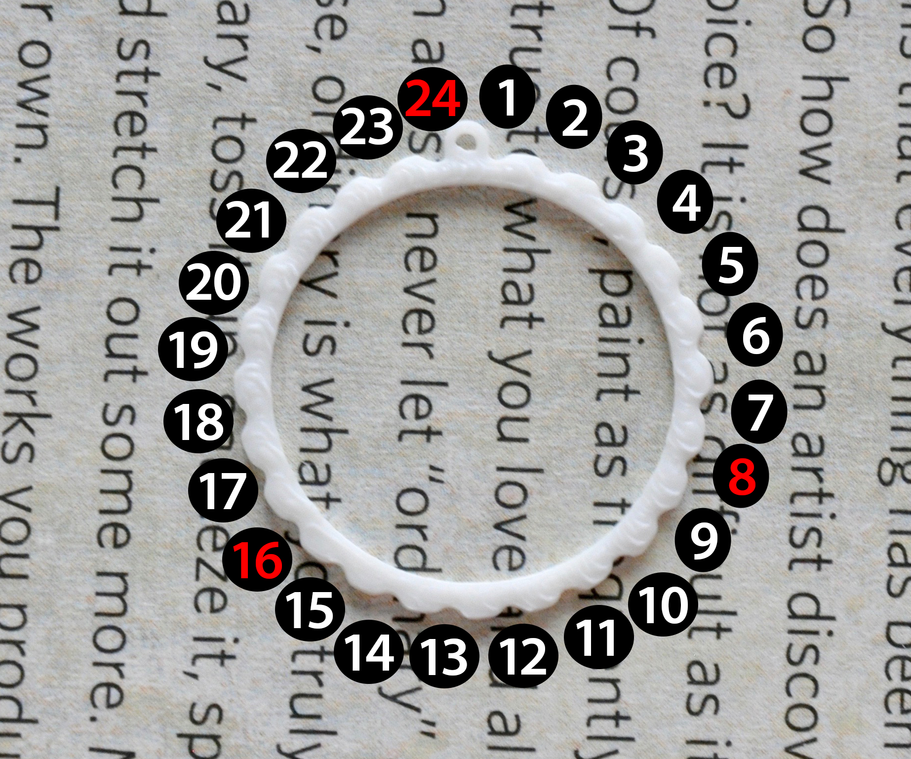 The wrapping can kind of get confusing. To try to make it easier, I did a little number chart on this white one for reference.