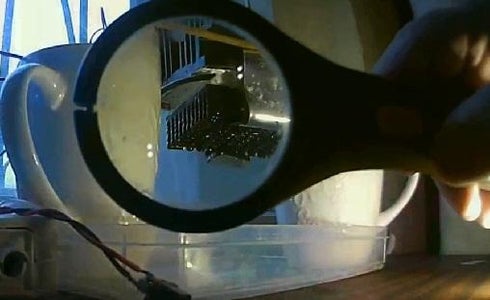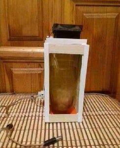 First, I checked the assembled structure of a Peltier element, a fan and two radiators. I fed 0.8 amp, 9 volt. The result pleased. The water came out after 8 minutes and literally before my eyes turned into snow. Then i conducted a test with a solar panel, cloudy weather, but after 40 minutes, a spoon of water formed. Behind the scenes, in sunny weather, the same thing happened in 10 minutes. Making sure that everything works, i made a case from improvised materials and put a glass.