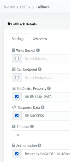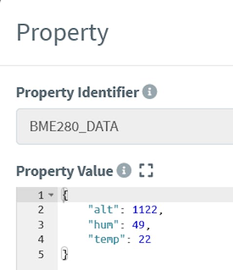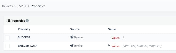 Notice that the value of BME data is in JSON object format, this allows us to store and utilize the same device property to store multiple data with a single call.