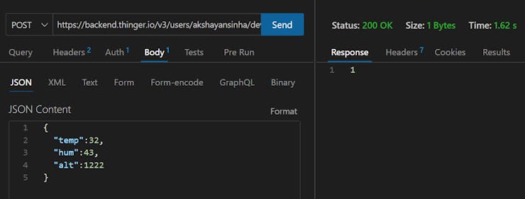 For testing, I used an API testing tool 'ThunderClient', and noticed that it worked great.