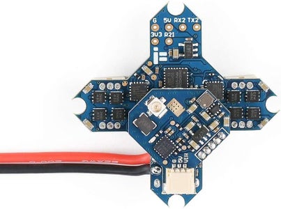 One of the lightest and most integrated options available, the Happymodel Diamond F4 combines flight control, ESC, receiver, and video transmitter functionalities on a single 3.5g board. Supporting RPM filtering and low dead time, it promises improved performance and efficiency, enhancing flight characteristics and extending flight times.