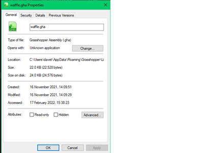 If it still doesn't work, then right-click the "waffle.gha", and make sure it it "unblocked" under "properties"