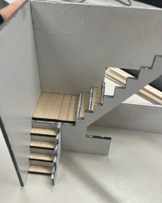 I started with the steps once again because I felt the most confident in this part. I soon realized that the piece I cut out for the second half of the steps was not long enough or long enough to cover the space I needed it to, so I got measurements using a ruler and reprinted that part using another Autocad sketch.