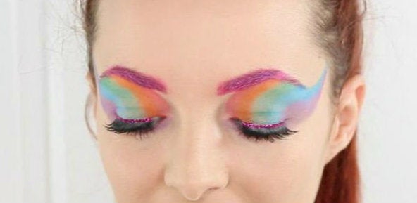 Use colors that are in the rainbow on your eyes, and for the last two colors bring them out towards your temples.