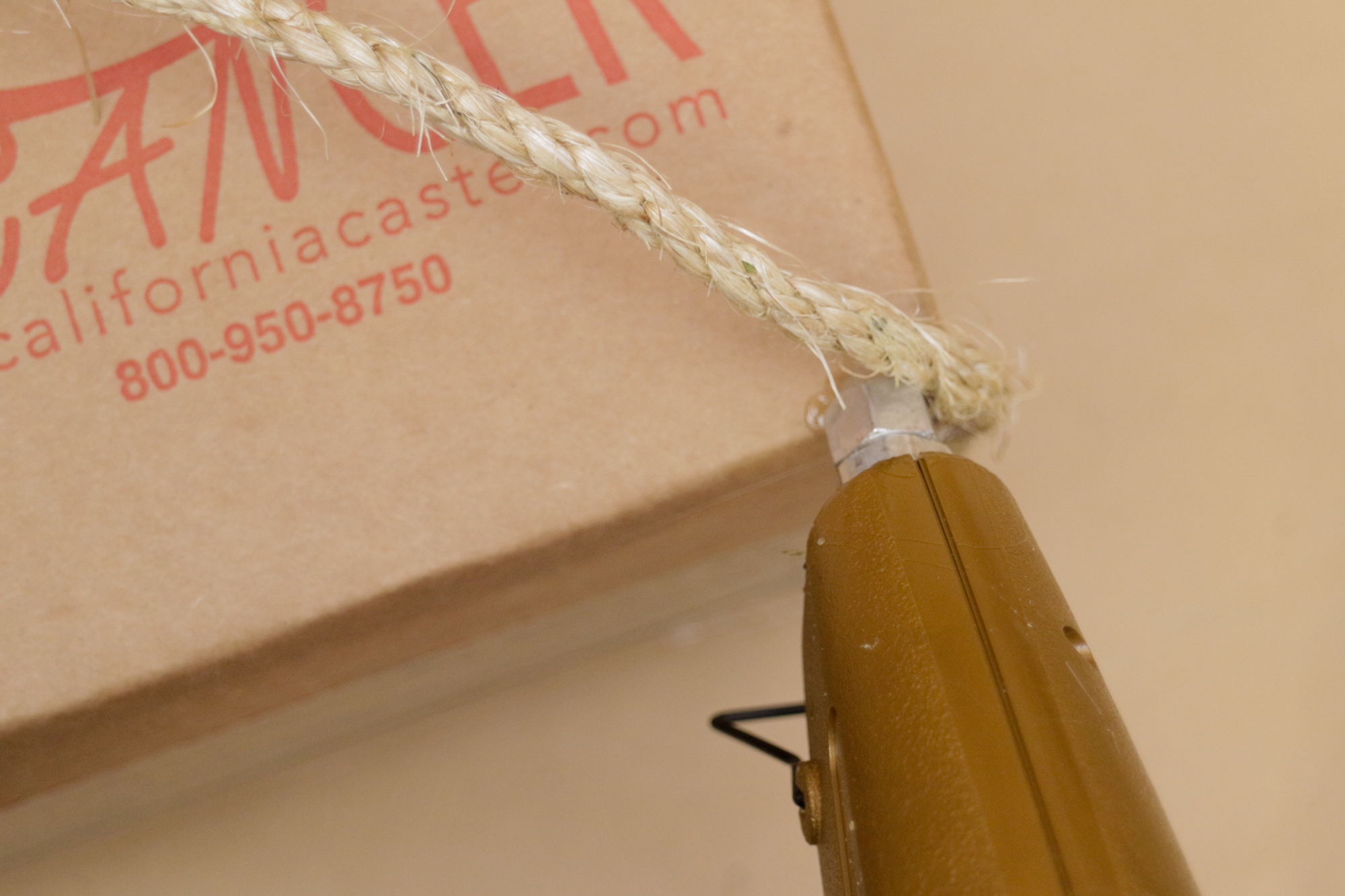 When you get to the top, cut your end with a scissor or blade, then glue that frayed edge down with a big glob of glue.