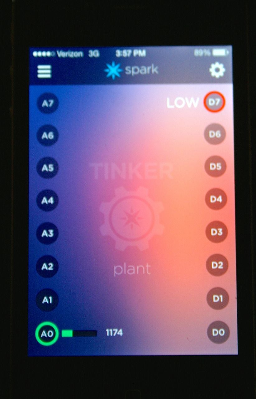Open the Spark app. It will ask for the wifi password. The Spark app will find the Spark module (the module will be flashing all kinds of colors to indicate that it is ready). Name the Spark module whatever you want (I called this one "Plant").