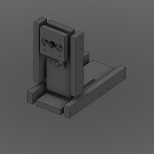The Mount will be fit to the Upright in the channel between then Upright Braces with two 1-1/2 inch carriage bolts. I recommend waxing to prevent accidently gluing to the Upright and Braces. Ensure the countersink holes for the trim router mounting are on the lathe side and the countersink holes for the Upright bolts are on the user side. The carriage bolt heads will be in the countersinks on the Mount, with a flat washer and a nut, wing nut, or knob on the lathe side of the Upright. Tighten the nut, wing nut, or knob to seat the square base of the carriage bolt in the Mount countersink.