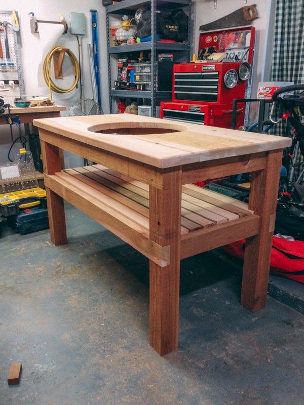 The main structure of this piece can also be used for so much more than just something to hold a grill. It can be made into a workbench, a patio counter, an island, ... the list goes on. The price of this thing was also very reasonable. I think all the materials were under $150. I mainly used cedar, which is almost 98% of the entire project, the other pieces were a few screws and some urethane to seal it up. Cedar is a really good outdoor wood. There are a number of woods that hold up really well outdoors, cedar, cypress, redwood and teak to name a few. Cedar is the most readily available since it's at most big box stores.