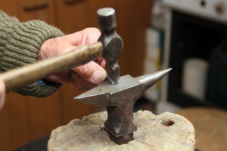 Now start enlarging the bowl part of the rod, hammering with the peen in line with the axis of the rod.