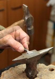 Start hammering with the peen to lenghten and make thinner the rod, leaving untouched the part that will be the bowl of the spoon.